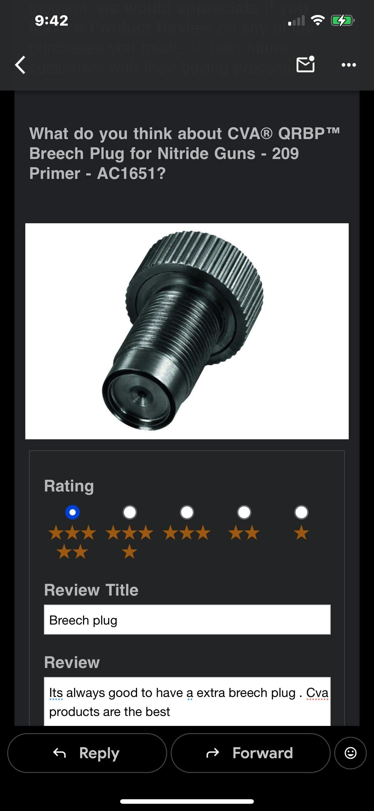 The CVA® QR™ Breech Plug for Nitride guns is designed for use with all loose powder and pelletized muzzleloading propellants. Nothing affects the performance of your muzzleloader more than a clean breech plug for consistent ignition and better overall accuracy. While the Nitride process is not done on these breech plugs, they do feature a 'black oxide', which protects from rust and corrosion, while still giving the same appearance as the Nitride barrels.
