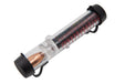The powder measure function of the t-loader features a graduated volumetric marking system on the side of the loader. The loader can accommodate up to 140 grains of loose or pelletized black powder, additionally, the powder is kept separate from the bullet avoiding messy loads and allowing for the use of loose and pelletized powder. The t-loader tool also features a short 3/4" bullet starter that is integrated on the side of the loader for getting bullets started down the barrel. Located right next to the short starter is a recess in the loader that allows the user to slide the t-loader over the end of a ramrod and use it is a functional palm saver. On the opposite side of the powder compartment is a sperate bullet compartment that houses the projectile of your choice. Both ends of the speed loader are sealed by solid rubber caps that keep your powder and bullet dry and ready for rapid deployment.