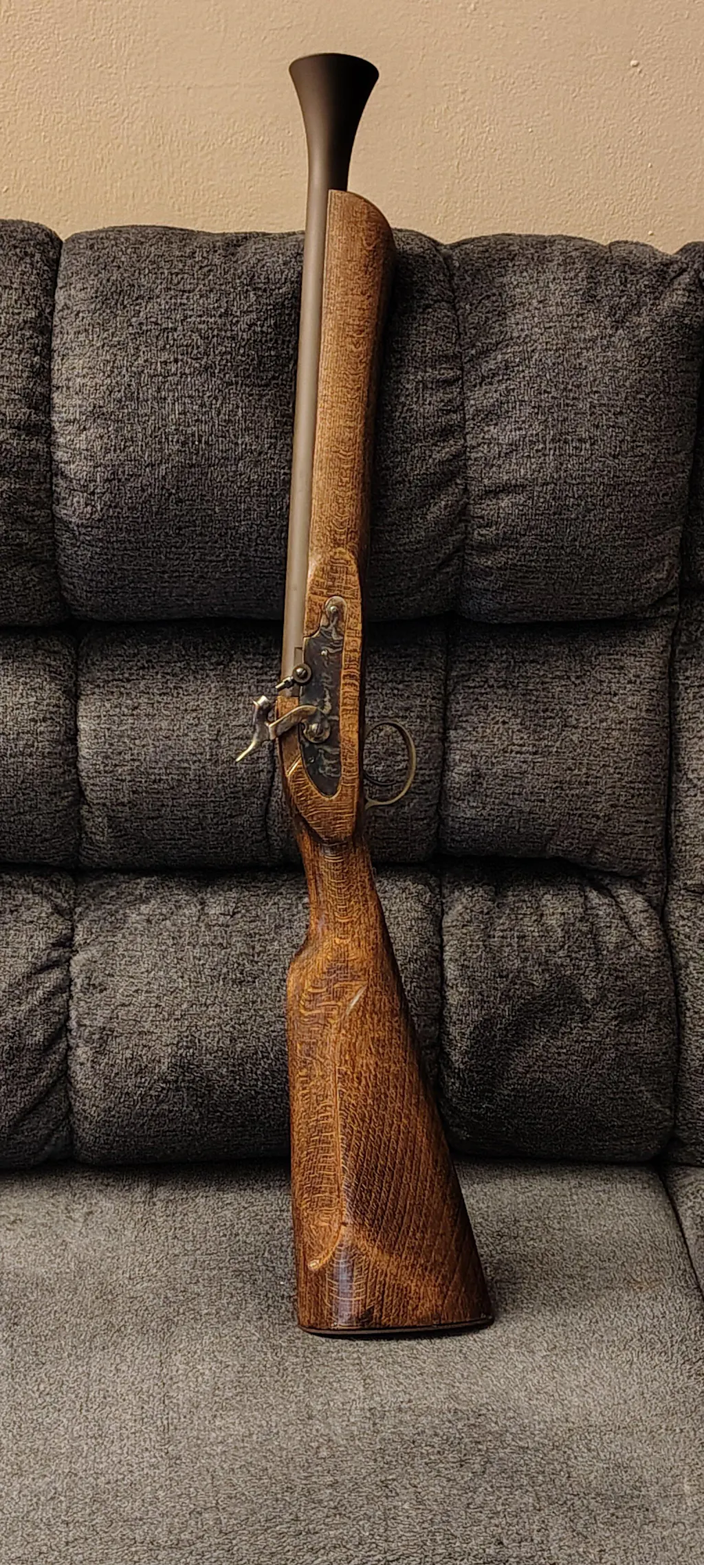 The Traditions™ Blunderbuss Rifle Kit comes in .54 caliber percussion ignition. The Blunderbuss features a flared steel barrel and features a single trigger percussion ignition. The rifle’s hardwood stock is accented by beautiful brass trigger-guard and butt plate furniture.