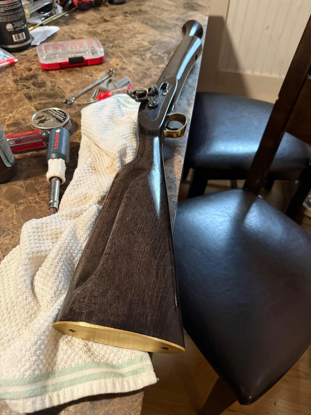 The Traditions™ Blunderbuss Kit comes in .54 caliber flintlock ignition. The Blunderbuss features a flared steel barrel and features a single-stage trigger for easy ignition. The rifle’s hardwood stock is accented by beautiful brass trigger-guard and butt plate furniture. The 16 3/4" trumpet-style barrel is designed to shoot .54 caliber round balls. Once finished the Traditions Blunderbuss Rifle is great to enjoy out to the range or simply display on your wall.