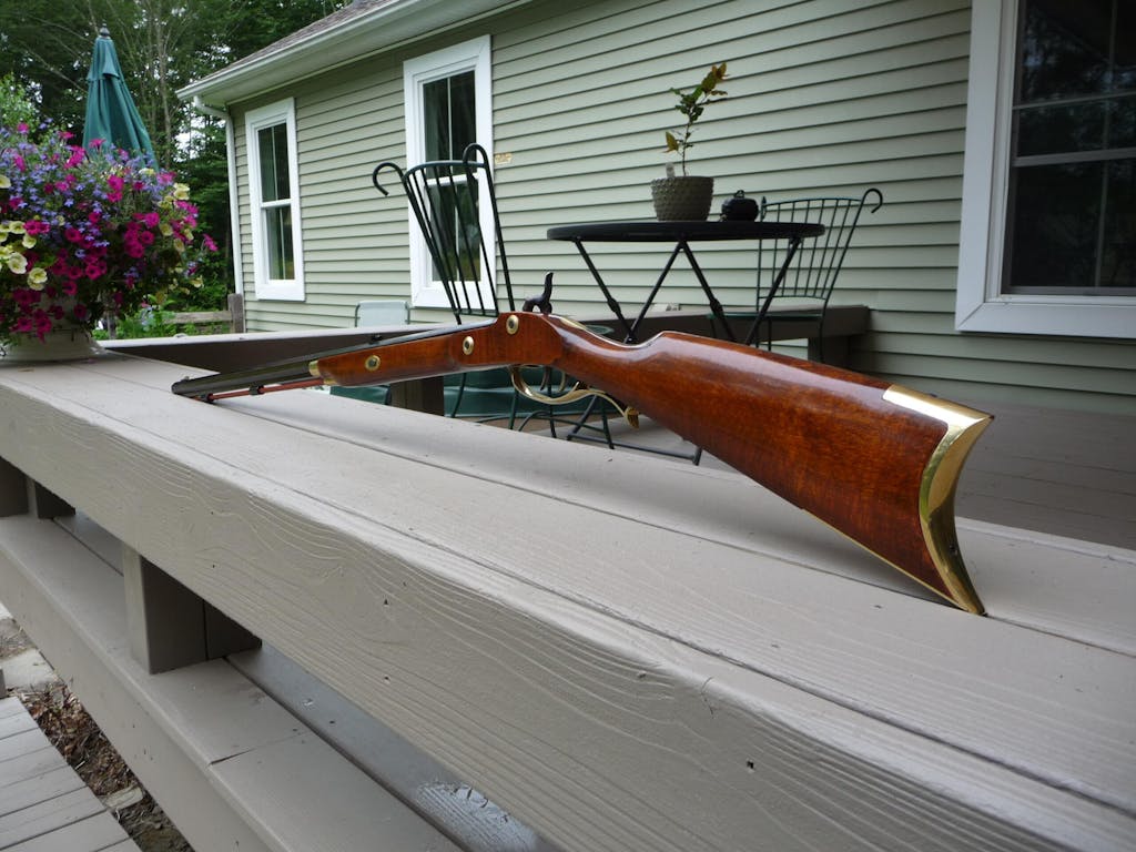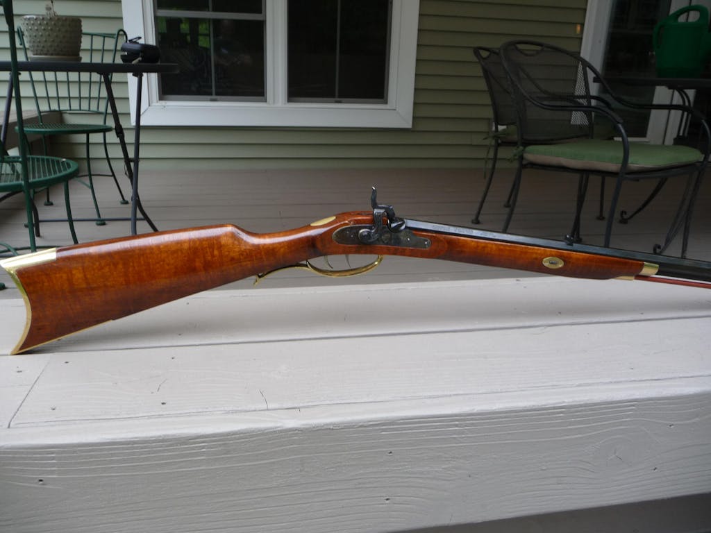 The rifle boasts easily removable 32" octagonal barrel, and fixed blade sights. The Crockett Rifle Kit features a double-set trigger in an oversized glove-fitting, trigger-guard and comes complete with shooting, loading and cleaning instructions. The Traditions™ Crockett is a percussion rifle sporting a 1:48" rate of twist and has an overall length of 49" and weighs only 6 3/4 lbs.